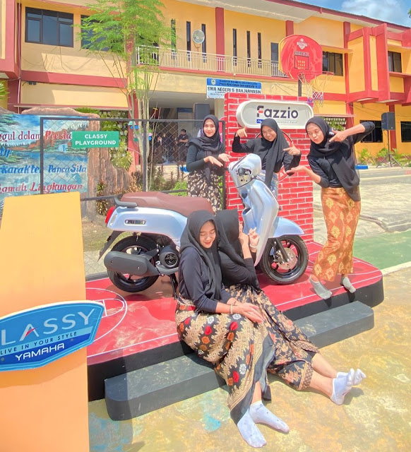 | BERGAYA: Eskul teater SMAN 5 Banjarmasin saat bergaya didepan motor Yamaha Fazzio Hybrid Connected - Foto Dok Yamaha |